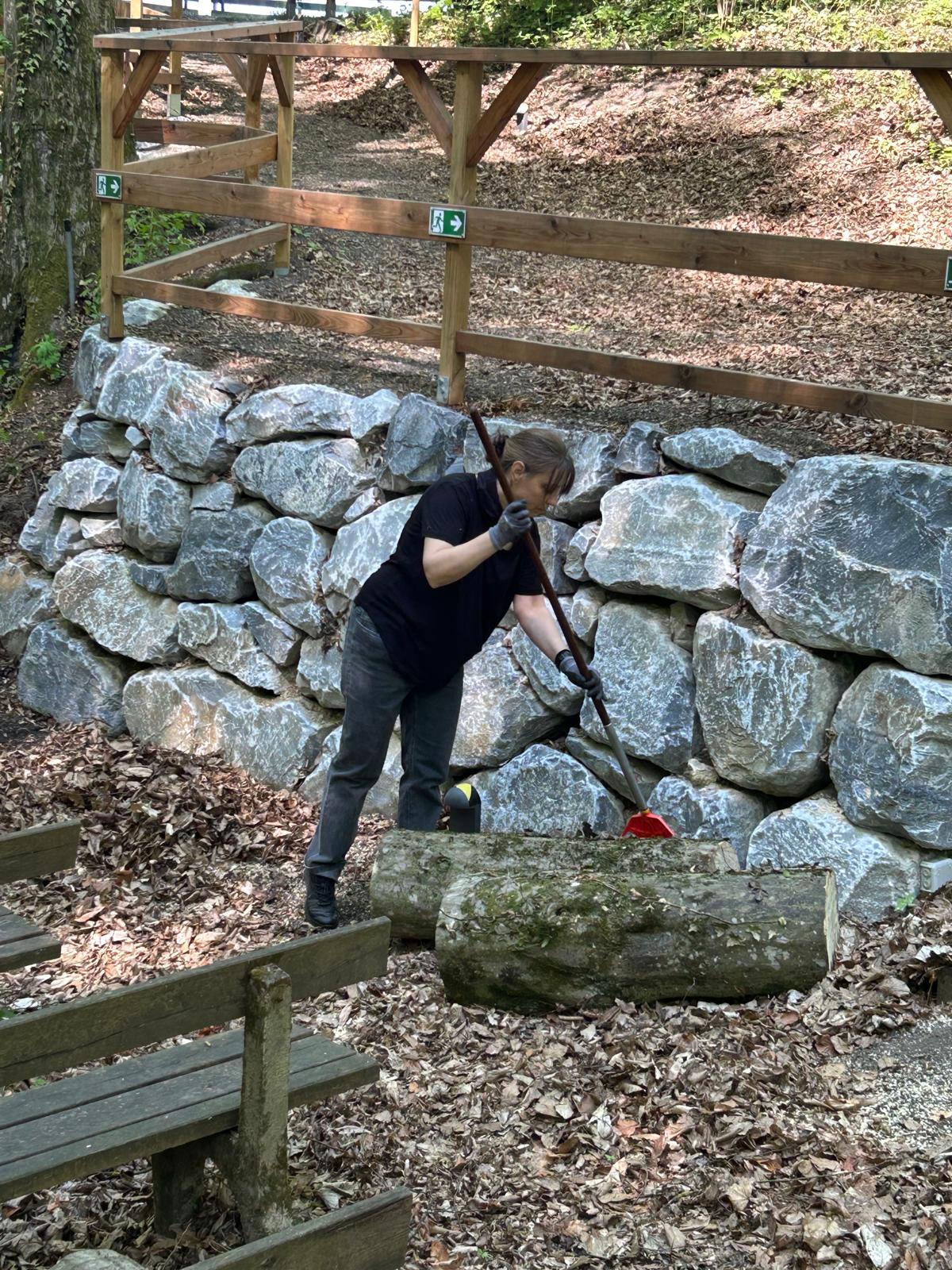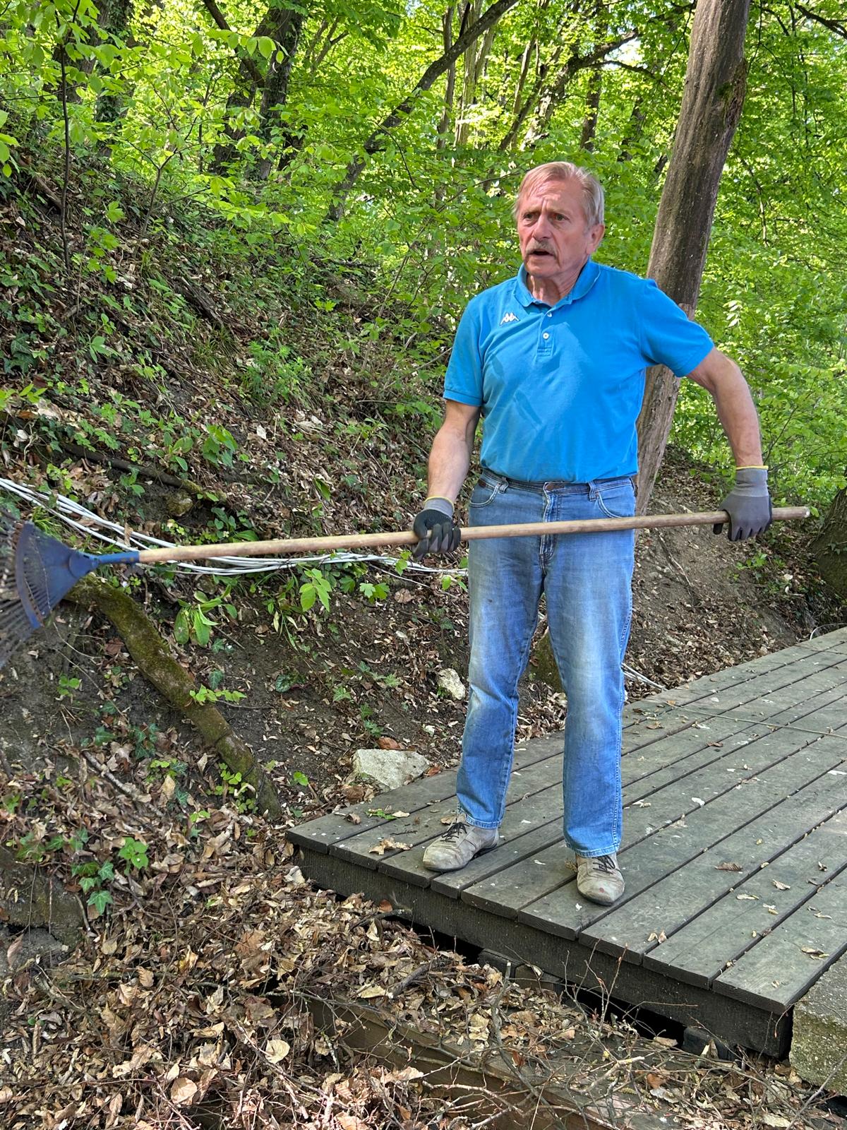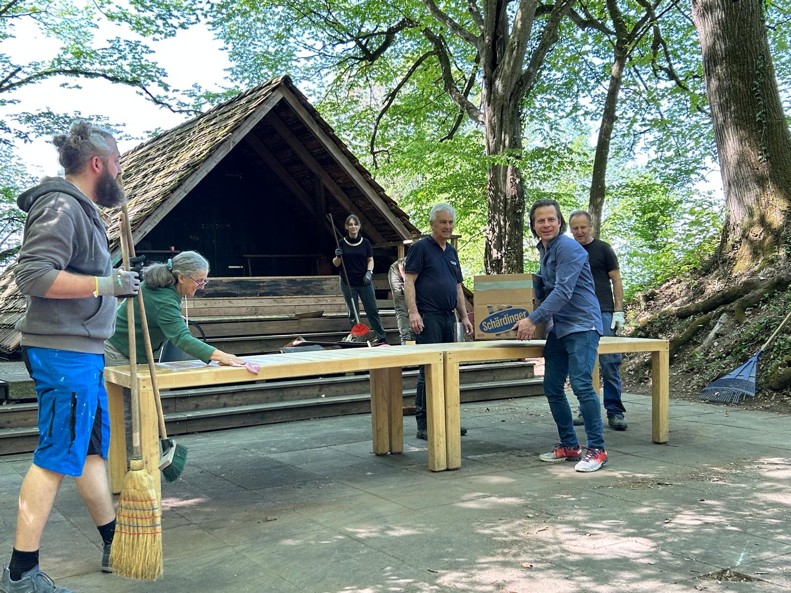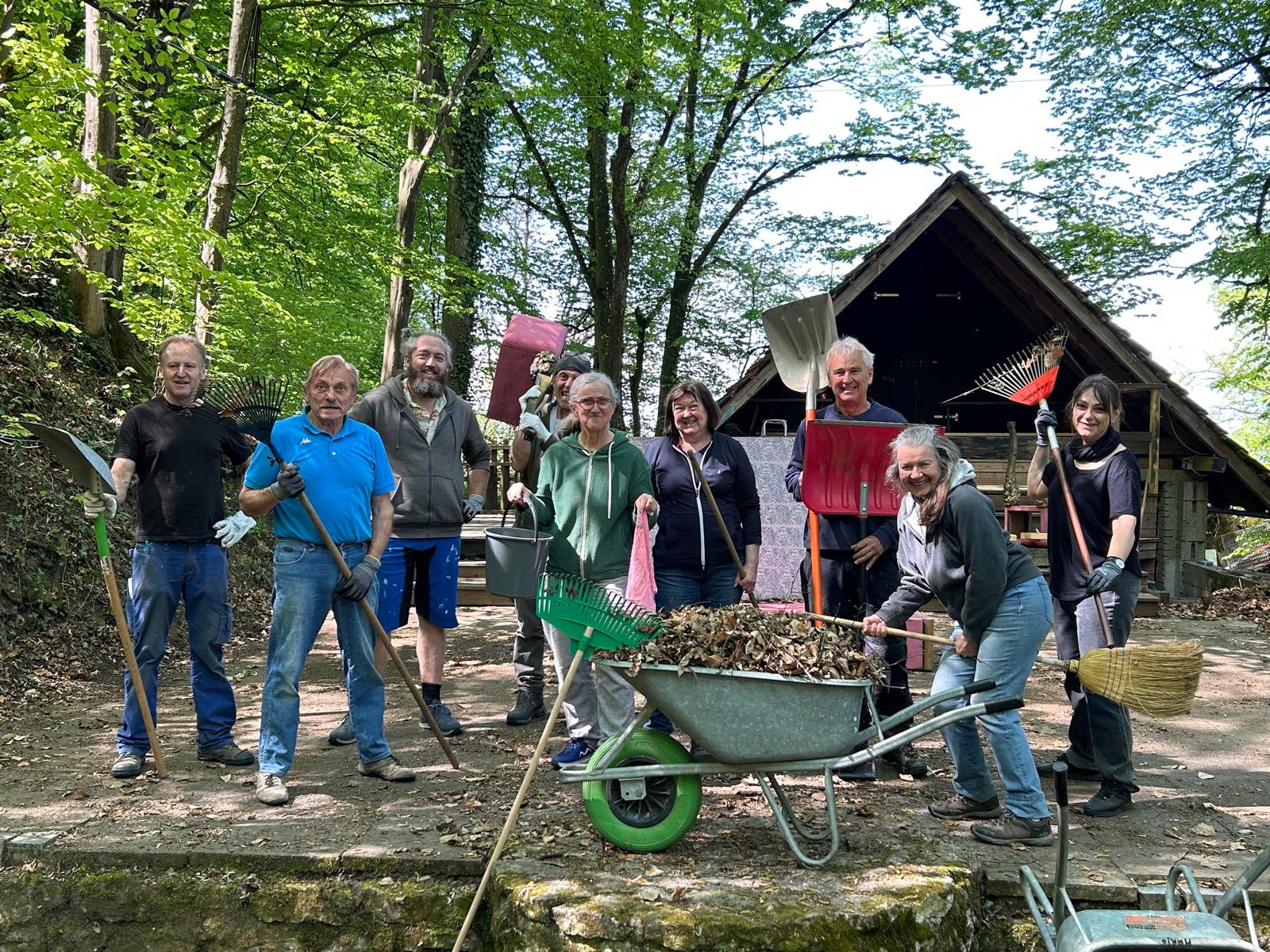 Man kann es kaum glauben, wie reich uns die Natur über den letzten Winter beschenkt hat. Flächendeckend verschwanden Zuschauerraum und Bühne unter Laub und Ästen. Das mag romantisch aussehen, aber: So kann dort kein Theater gemacht werden! Also machte sich eine beherzte Gruppe auf, um dem ganzen Material zu Leibe zu rücken. Es wäre beinahe ein antikes Heldenepos wert, wie da unter höchstem Einsatz Gelände und Anlage gesäubert wurden. Zur Belohnung gab es feine Pizzen vom Marktstüberl Draxler, persönlich überreicht vom Chef!