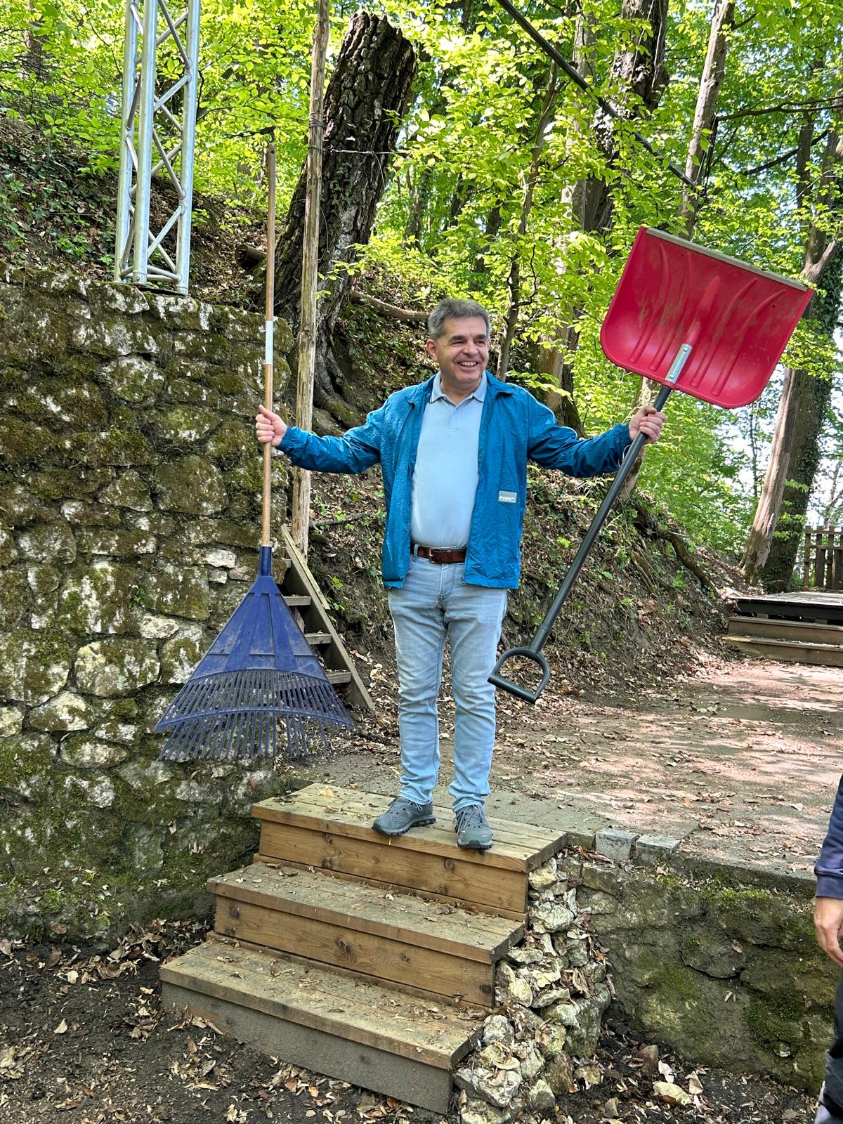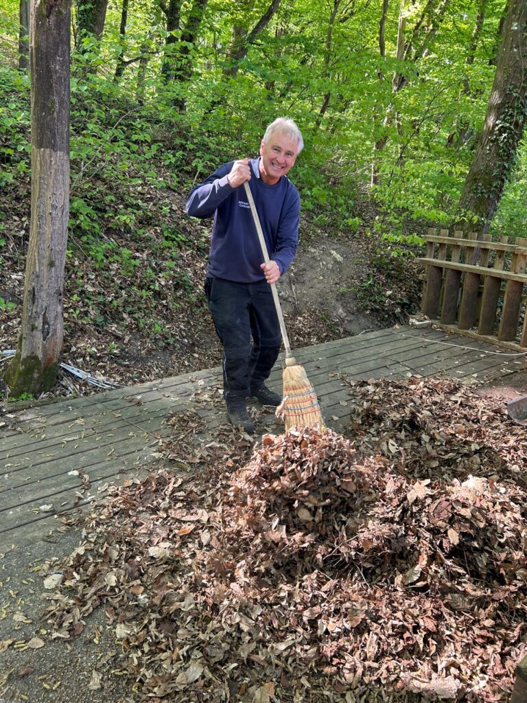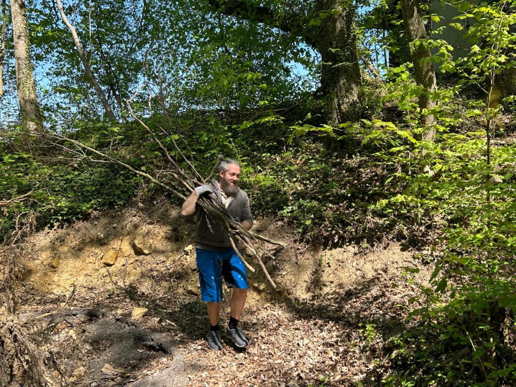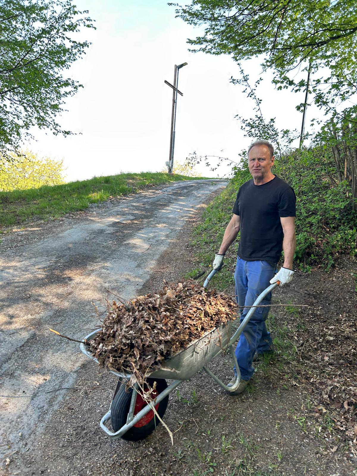 Man kann es kaum glauben, wie reich uns die Natur über den letzten Winter beschenkt hat. Flächendeckend verschwanden Zuschauerraum und Bühne unter Laub und Ästen. Das mag romantisch aussehen, aber: So kann dort kein Theater gemacht werden! Also machte sich eine beherzte Gruppe auf, um dem ganzen Material zu Leibe zu rücken. Es wäre beinahe ein antikes Heldenepos wert, wie da unter höchstem Einsatz Gelände und Anlage gesäubert wurden. Zur Belohnung gab es feine Pizzen vom Marktstüberl Draxler, persönlich überreicht vom Chef!