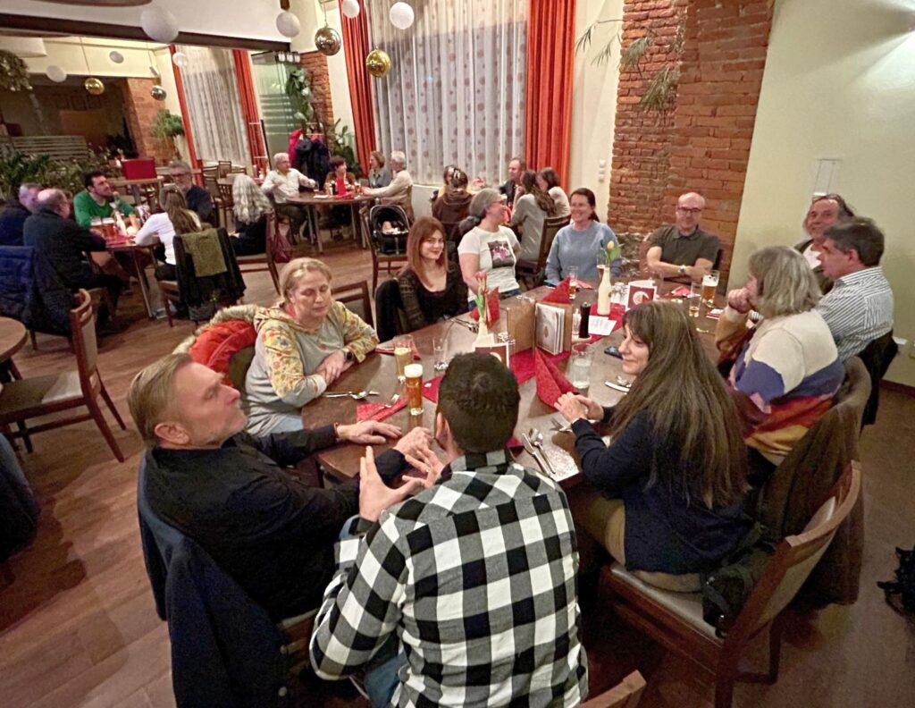 In jeder Zeitzone beginnt das Neue Jahr zu einer anderen Stunde. Jenes der Schlossbergbühne startet traditionell in Herzog's Bierbotschaft, heuer am 24. Jänner. Denn da traf sich die illustre Schar der glatteissicheren Aktiven, um mit frischer Energie das neue Bühnenjahr einzuläuten. Nach einer launigen Ansprache von Obmann Mario Diestler wurden unsere neuen Mitglieder auf das Herzlichste begrüßt, ganz besonders der jüngste Nachwuchs Ricardo Perner. Erst einige Wochen auf der Welt und schon ein kleiner Bühnenstar! Margit Fritz erläuterte den baldigen Vereinsausflug, Sara Mayrhofer machte Werbung für unsere schon buchbaren Theaterworkshops für Kinder und Jugendliche. In kurzen Präsentationen von Autor Gerhard Rath und Regisseur Jürgen Gerger sowie vielen klärenden Gesprächen ging es dann intensiv um unserer heurigen Jahresproduktion "Eine Steirische Odyssee". Bestens betreut und kulinarisch versorgt vom Team der Bierbotschaft freuen wir uns auf das Kommende!
