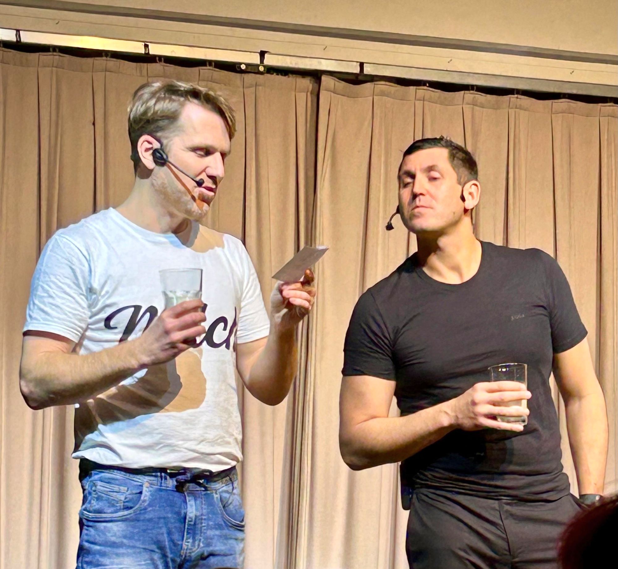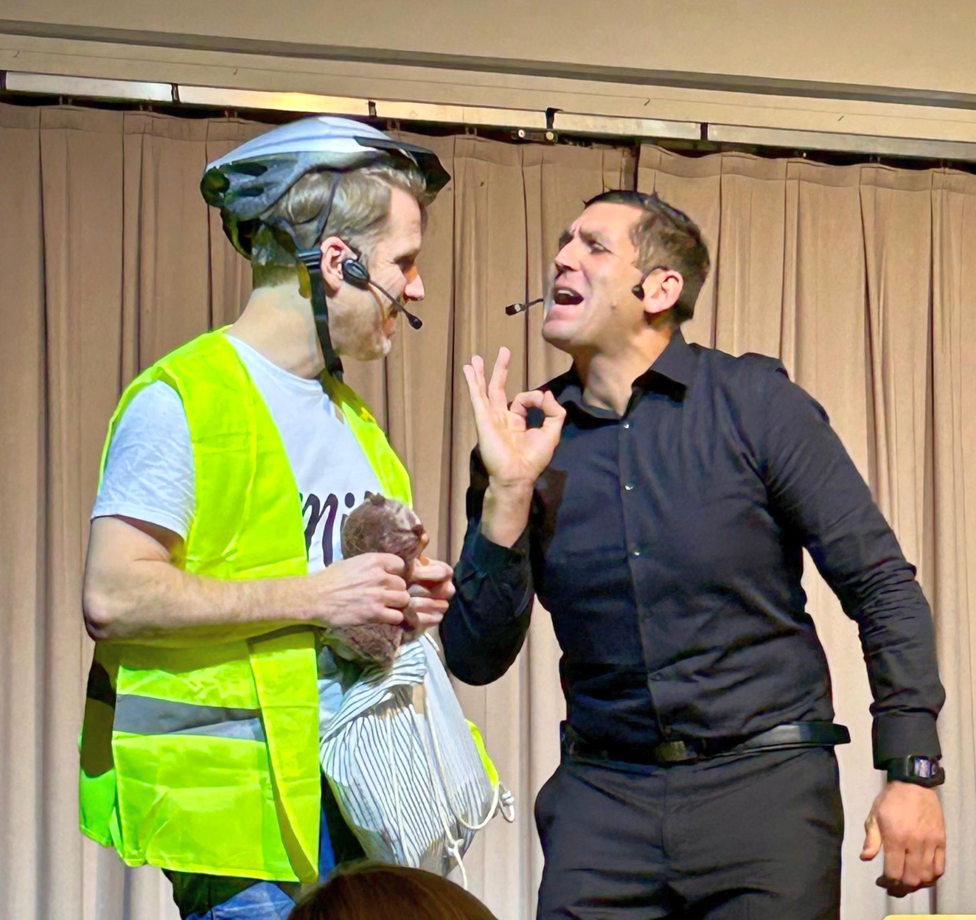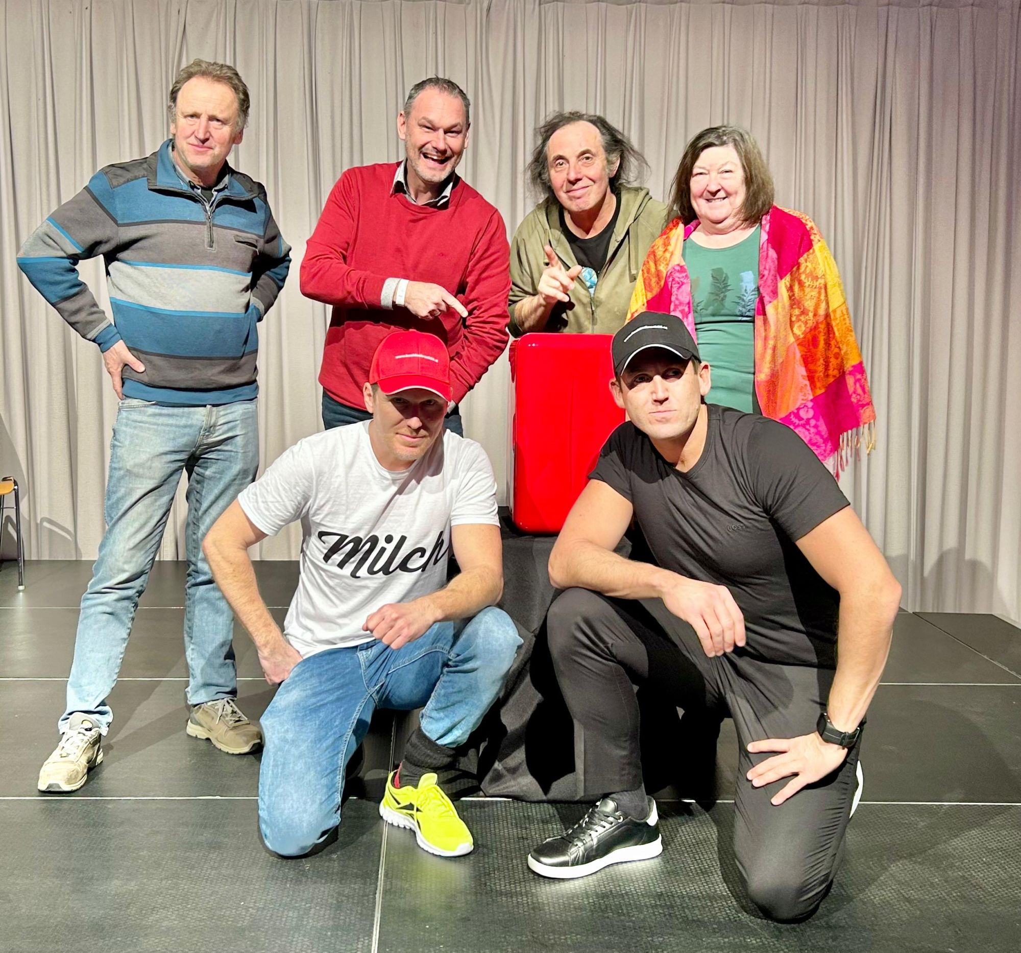 Ein Kühlschrank, zwei Männer, drei Stühle – und viele Fragen, die uns alle betreffen! Diese wurden im Theater/Kabarett von Andreas Ortner gemeinsam mit einem Publikumsliebling der Schlossbergbühne beantwortet: Markus Perner. Über 100 Gäste erfreuten sich am "zeitgenössischen Bühnenstück, das mit kabarettistischen Elementen spielt und den Puls der Gegenwart mit feinem Humor einfängt", am 29.1. im Alten Kino in Leibnitz. Darunter auch eine Abordnung der Wildoner Schlossbergbühne, die mit dem Lokalmatador auf die Bühne oder gar in die Garderobe durfte.